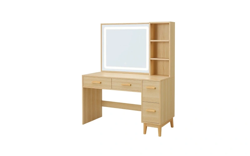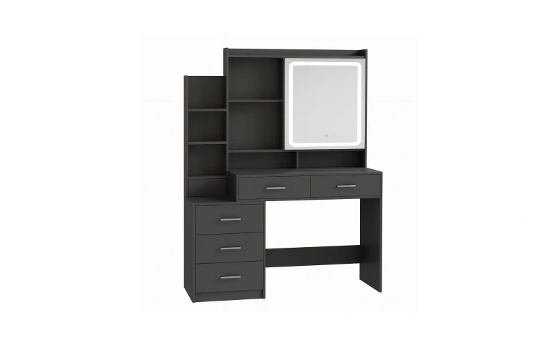 Coiffeuse au design moderne avec miroir, offrant un espace de rangement généreux